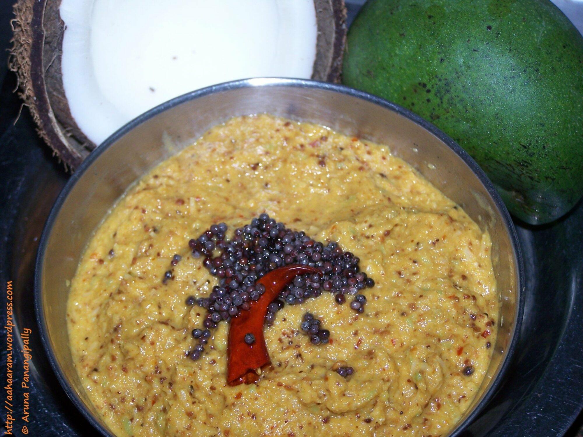 - Kobbari Mammidikaya Pachadi or Coconut and Raw Mango Chutney